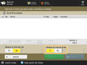 Seleccione <Buzón RX en memoria> y active <Bloqueo de memoria de fax> (<Sí>).