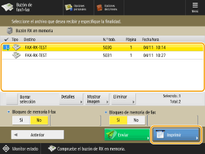 Para imprimir todos los documentos en la memoria, pulse <No> en <Bloqueo de memoria de fax>.