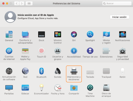Abra [Preferencias del Sistema] y haga clic en [Impresoras y escáneres].