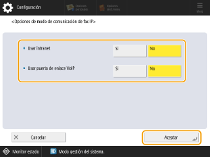 Pulse <Usar fax IP> y, a continuación, pulse <Sí>.