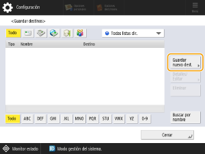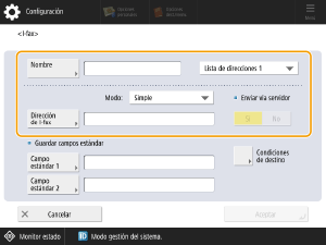 Esta opción es necesaria si se van a especificar direcciones URI como destinos cuando se envían faxes IP. Establecer esto en <Sí> le permite guardar las direcciones URI.