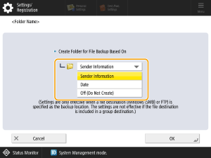 Pressione <Folder Name>, especifique o tipo de pasta na qual os documentos de backup serão salvos e pressione <OK>.