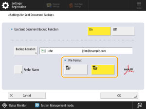 Embora você possa selecionar o local de backup nas listas de endereços de 1 a 10 ou na lista de endereços de um toque, é recomendável que você selecione o local de backup no <Address List for Administrator>, que não pode ser editado ou excluído por usuários em geral.