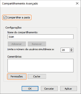 Marque a caixa de seleção de [Compartilhar a pasta] e clique em [Permissões].