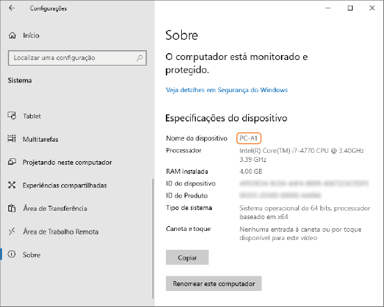 Verifique o endereço IP do seu computador conforme mostrado abaixo.