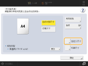 将纸张添加到多功能托盘时,会显示用于设置纸张尺寸和类型的屏幕。