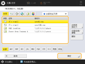 从<个人地址列表>、用户群组地址列表、<地址列表1>至<地址列表10>或<管理员的地址列表>中选择接收方。