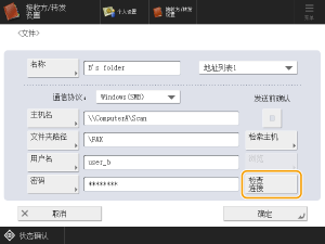 如果将<通信协议>设置为<Windows(SMB)>,并且在<文件夹路径>中指定了不存在的文件夹,则会自动创建一个文件夹并在创建的文件夹中保存文件。但如果在多个级别指定了不存在的文件夹,则会发生发送错误。