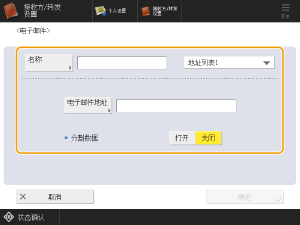 <地址列表1>至<地址列表10>可以比作10个地址簿。在地址列表中为每个部门或商业合作伙伴注册接收方后,可以在指定它们的时候轻松找到接收方。通过重命名部门或商业合作伙伴,还可以轻松地管理地址列表。