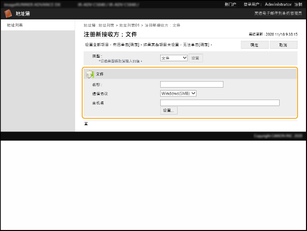 在地址簿中注册“用户B的计算机上的共享文件夹”