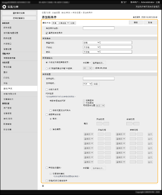 将来电传真文档转发到共享文件夹(远程用户界面)