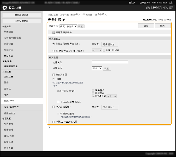 配置转发设置之前,请使用[扫描后发送]功能检查文件是否确实到达注册的接收方。