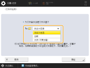 可以选择<发送方信息>、<日期>或<关闭>作为文件夹名称。