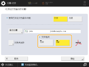 本节介绍如何创建传真文档的备份文件以及将这些文件保存在预设备份位置(文件服务器、电子邮件等)。