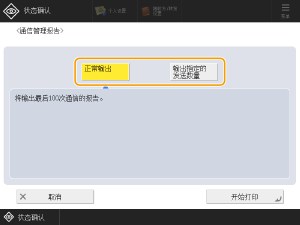如果显示<需要检查打印机。(请联系客户支持中心。)>信息,表示无法使用打印功能,则会在恢复后的通信管理报告中打印<输出指定的发送数量>中指定数量的通信日志条目。