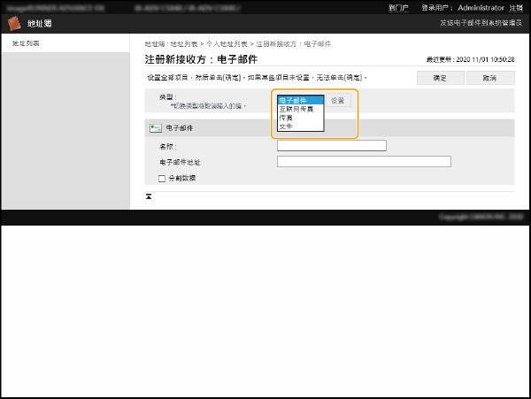 [管理员的地址列表]是只能由具有管理员或设备管理员权限的管理员用户使用的地址列表。