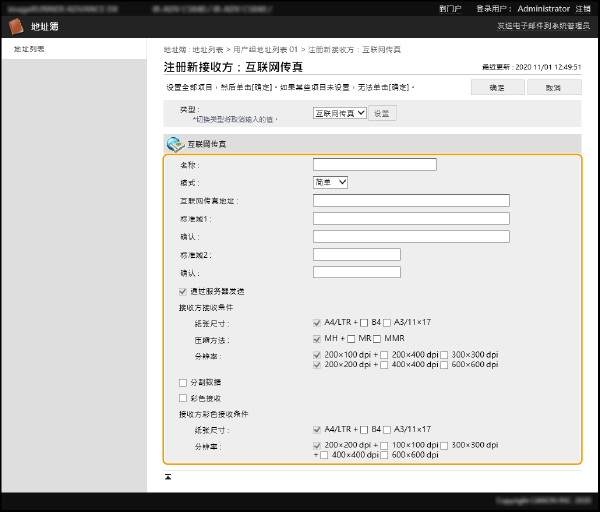 本节介绍如何从远程用户界面检查或编辑地址簿,以及如何在地址列表中注册接收方。