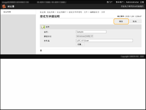检查要注册地址的位置([个人地址列表]、用户组地址列表、[地址列表01]至[地址列表10],或[管理员的地址列表])。
