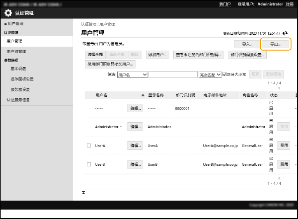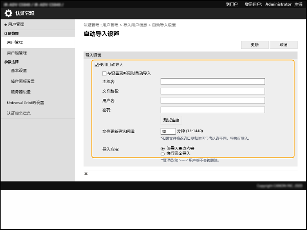 password | 是 | ISO885915字符集范围内的0到32个字符 | 控制字符 | ![]() | 导出时的输出为"********"(* x 8)。 更新密码时,“********”将被删除并被新密码覆盖。但是,导入更改内容时,即使不指定字段(保留为空),也不会覆盖为空(空白),但会保留现有值。 如果导入更改时遗漏了该项目,现有用户将继续使用原始密码。 |