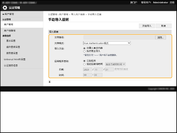 accountExpires | 是 | 参阅“注释”。 | 参阅“注释”。 | ![]() | YYYYMMDD格式。导入之后自动添加"235959"作为时间。 |