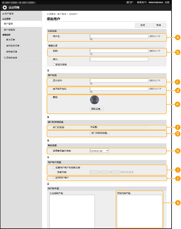 dc | 否 | 0到32个字符 | 控制字符 | - (不适用) | 不能更改。将为以下用户自动分配。。 根据服务器认证注册的用户 通过“简单登录”中的<作业接收时自动注册>注册的用户 |