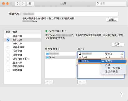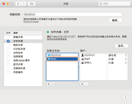 将扫描文档发送到计算机上的共享文件夹(macOS)