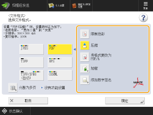 选择<PDF>、<XPS>或<OOXML>时,还可以设置各种其他功能。要指定设置,请选择要添加的功能。
