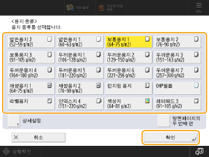용지 종류를 선택하고 <확인>을 누릅니다.