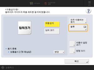 수동 급지대에 봉투를 넣으면 용지 크기를 설정하기 위한 화면이 나타납니다. 다음과 같이 용지 크기를 설정합니다.