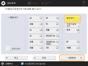 <수동급지대 용지의 기본 설정>을 누르십시오.