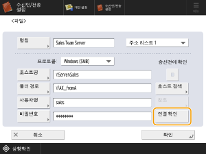 등록된 "영업팀 서버"를 전송처로 선택하고 <확인>를 누릅니다.