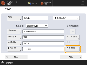 전송 설정을 구성하기 전에 <스캔하고 송신> 기능을 사용하여 파일이 등록된 수신인에게 확실히 도착했는지 확인하십시오.