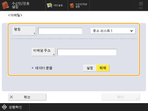 이 항목을 <설정>으로 설정하면 파일이 더 이상 제한을 초과하지 않도록 분할되고 여러 개의 전송으로 송신됩니다. 수신인의 이메일 소프트웨어가 수신 파일을 다시 결합하는 기능을 지원해야 합니다.