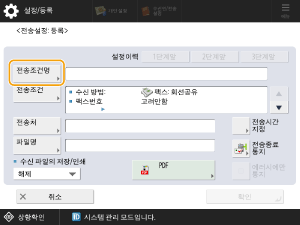 <전송조건>을 누르고 전송할 수신처에 대한 조건을 설정한 다음 <확인>을 누릅니다.