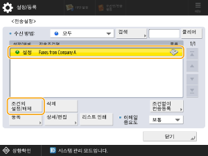 "A 회사에서 온 팩스"를 선택하고 <조건의 설정/해제>를 눌러 <설정>으로 설정합니다.