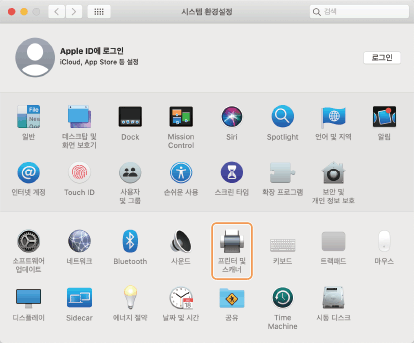 [시스템 환경설정]을 열고 [프린터 및 스캐너]를 클릭합니다.