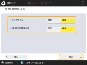 <IP 팩스 사용>을 누른 다음 <설정>을 누릅니다.