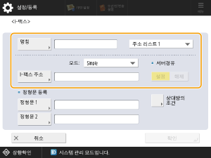 이 설정은 IP 팩스를 송신할 때 URI 주소를 수신인으로 지정하려는 경우에 필요합니다. 이 항목을 <설정>으로 설정하면 URI 주소를 등록할 수 있습니다.
