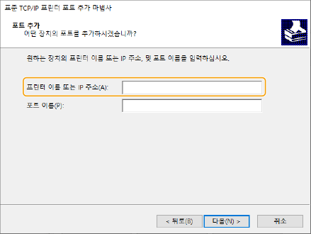 마법사의 이전 페이지로 돌아가서 [프린터 이름 또는 IP 주소]를 다시 입력합니다. 그런 다음 [다음]을 클릭합니다.