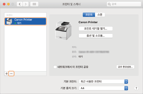 해당 디바이스를 선택한 다음 [-]을 클릭합니다.