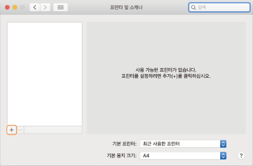 [+]를 클릭할 때 풀다운 버튼이 나타나면 [프린터 또는 스캐너 추가]를 선택합니다.