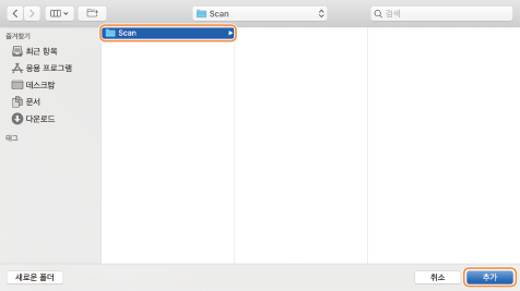 [공유 폴더]에서 생성된 "Scan" 폴더를 선택합니다.