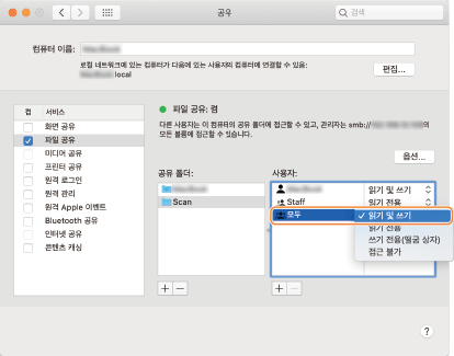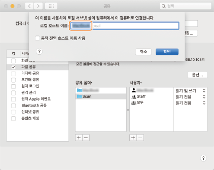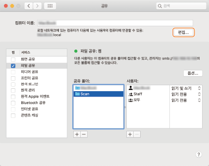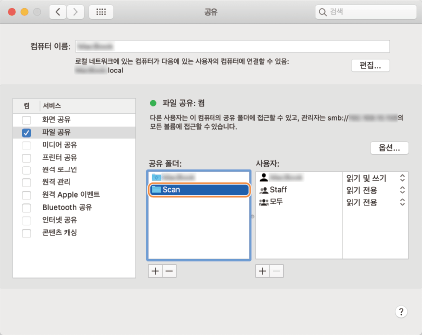 스캔한 문서를 컴퓨터의 공유 폴더로 송신(macOS)