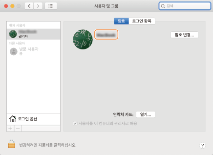 Mac의 로그인 사용자 이름을 확인합니다.