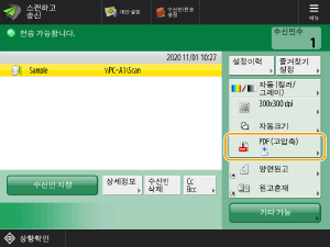 <PDF>, <XPS> 또는 <OOXML>을 선택하면 다양한 추가 기능도 설정할 수 있습니다. 설정을 지정하려면 추가할 기능을 선택합니다.