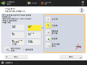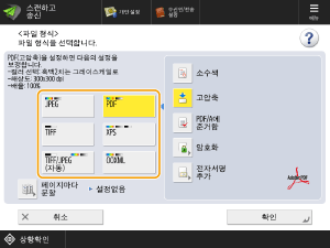 다양한 스캔 설정이 있지만, 이 설명에서는 파일 형식을 지정하는 방법을 설명합니다.