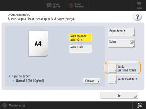Especifiqueu la mateixa mida de paper que el paper carregat a la safata multiús de l'equip.