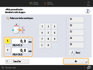 Especifiqueu el [Nom de la mida de paper personalitzada], [Unitat], el [Mida paper] i després feu clic a [Registra].