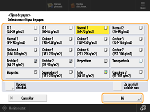 Seleccioneu el tipus de paper i premeu <Bé>.