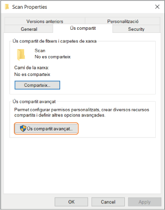 Feu clic a [Ús compartit avançat] a la pestanya [Ús compartit].